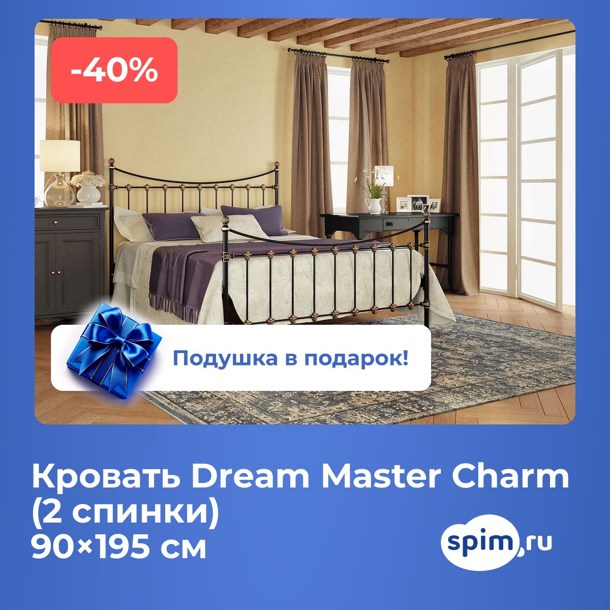 В односпальную кровать Dream Master Charm (2 спинки) 90х195 подойдут матрасы, обозначенные как 90x195 см, 900х1950 мм, 195х90 см, 1950х900 мм (ширина 90 см, длина 195 см).