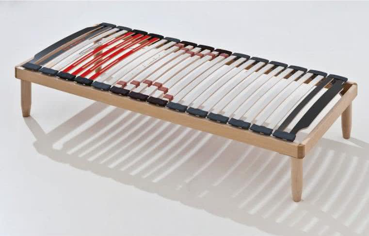 Основание из натурального бука, контурный профиль 70х25 мм. Углы решетки изготовлены из высокопрочного материала с защитой от несчастных случаев. Высота основания без ножек: 12 см. Ламели: Натуральный бук, с регуляторами жесткости в центральной части. Четыре перфорированные ламели, предусмотренные в зоне расположения плечевых суставов. Каучуковые держатели SEBS. Максимально возможная ширина – 200 см. Максимально возможная длина – 220 см. Дополнительно: Ножки для основания заказываются отдельно. Варианты:
