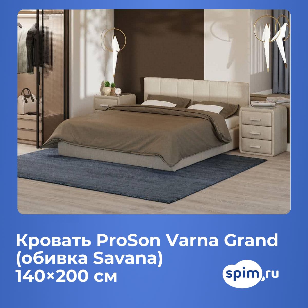 Кровать «ProSon Varna Grand (обивка Savana)» с обивкой или отделкой из кожи, экокожи или ткани — стильный элемент интерьера спальни.