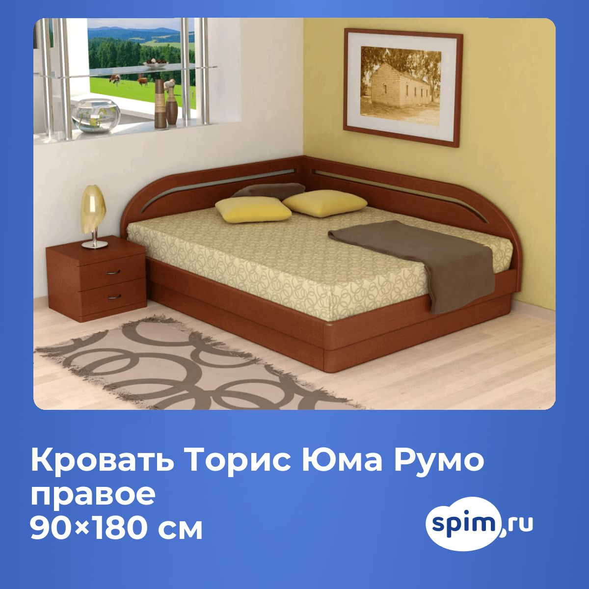 Кровать «Юма Румо правое» — с двумя спинками, расположенными углом. Угловая кровать особенно удобна для расположения в углу комнаты.