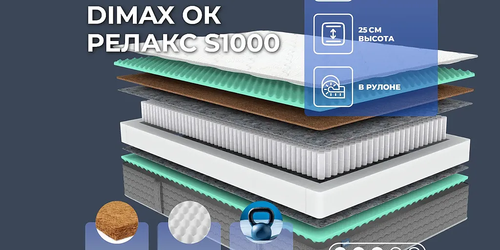 Чехол: Трикотаж, Жаккард. Maтpac свернут в рулон.
