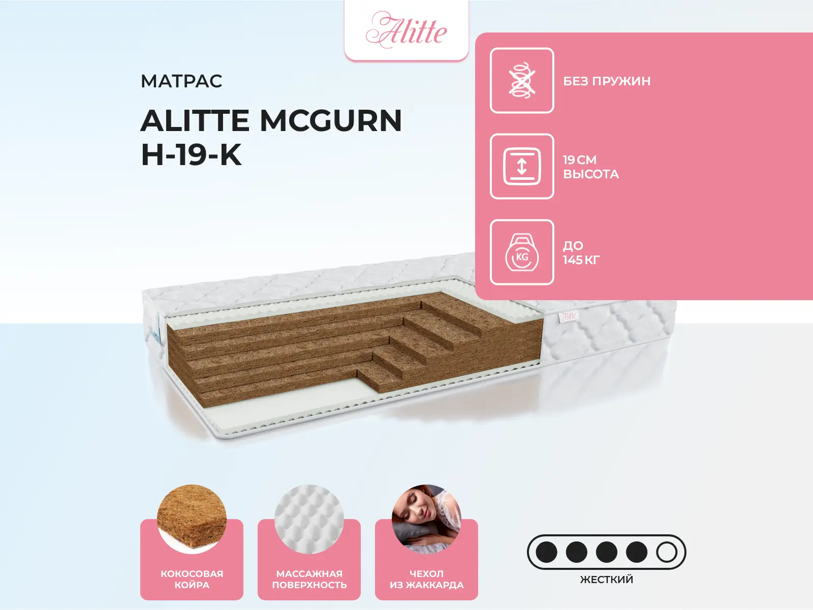 Матрас высокой жесткости «Alitte McGurn H-19-K» — оптимальный выбор для уверенной поддержки позвоночника. Именно такие модели обычно рекомендуют подросткам, спортсменам или людям с проблемами позвоночника.