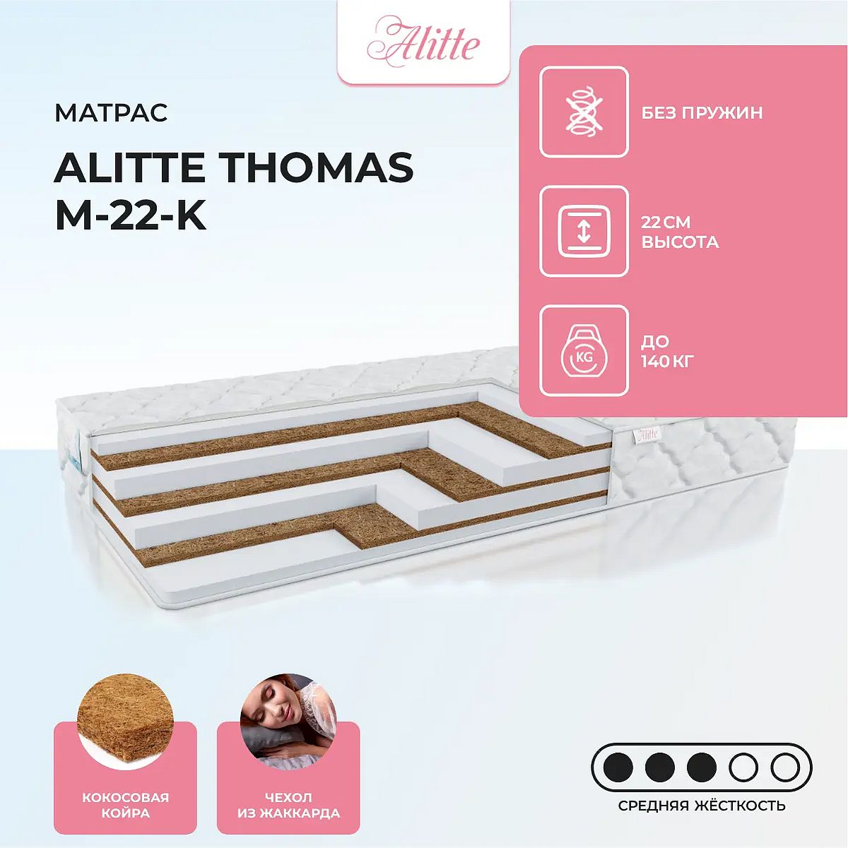 Матрас «Alitte Thomas M-22-K» — средней жесткости, которая комфортна большинству людей среднего телосложения. Это — оптимальный вариант и детям, и взрослым, и пожилым людям.