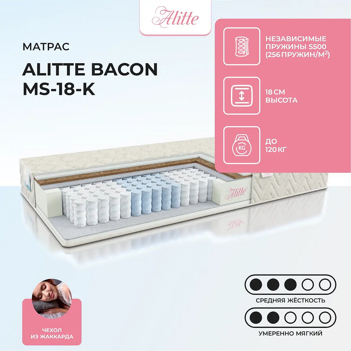 Матрас Bacon MS-18-K рассчитан на нагрузку не более 120 кг на одно спальное место.