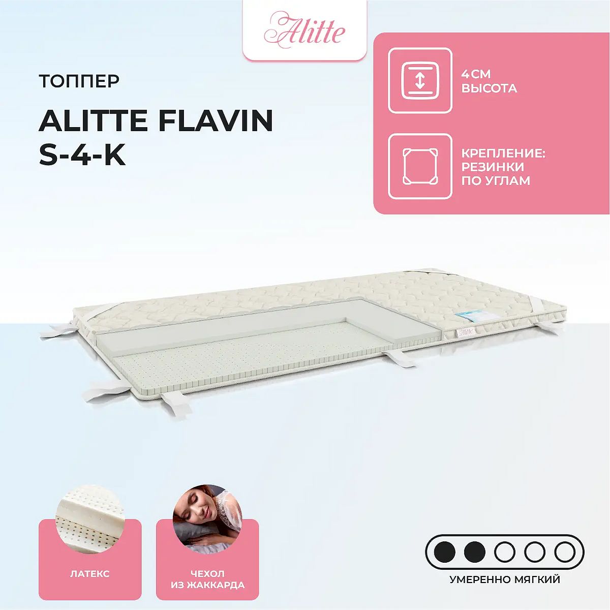 Средне-мягкий матрас «Alitte Flavin S-4-K» — для истинного ценителя комфорта. Такой вариант хорошо подходит людям с небольшим весом.
