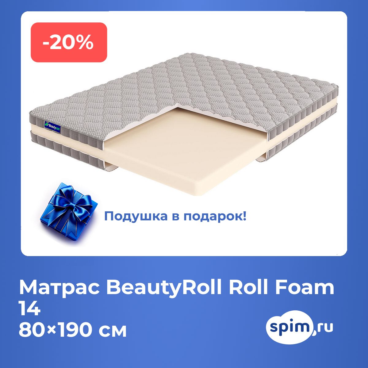 Подушка Soft в подарок при покупке любого матраса Beautyroll.
