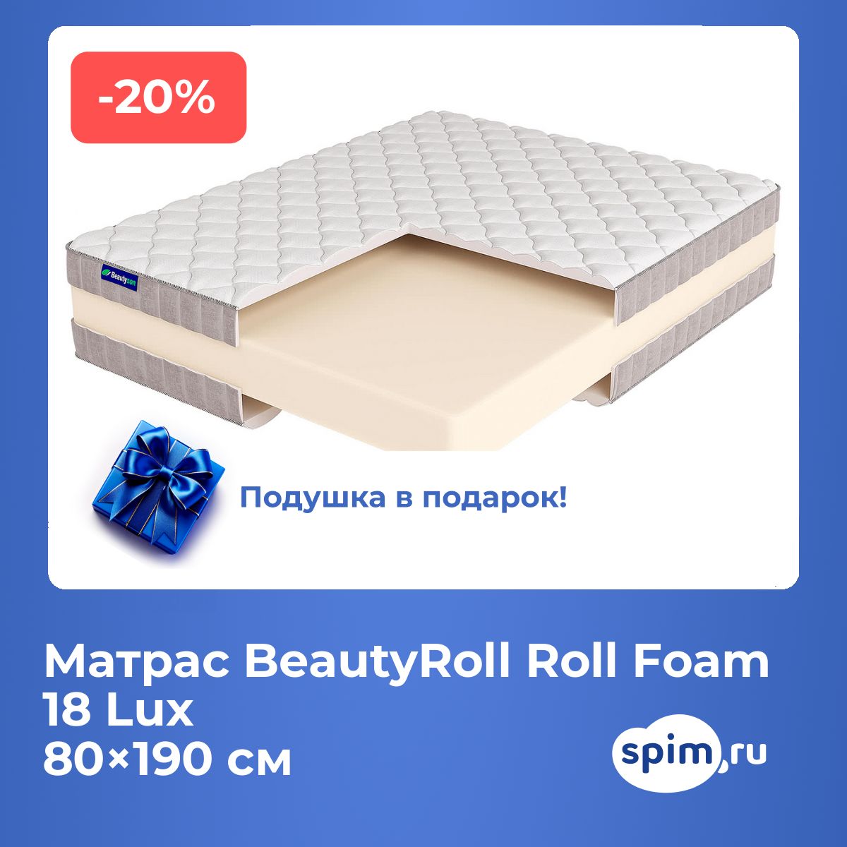 Подушка Soft в подарок при покупке любого матраса Beautyroll.
