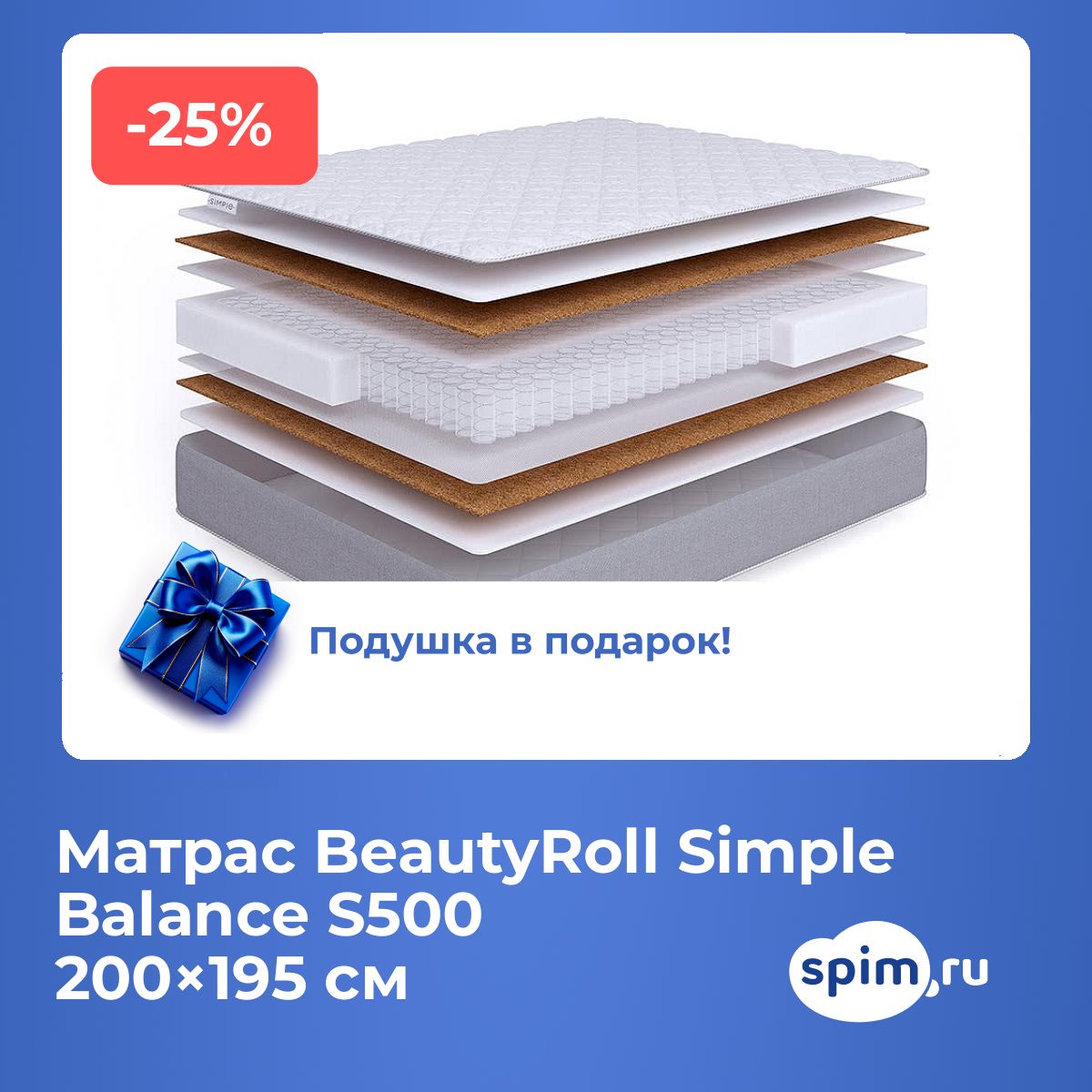 Матрас BeautyRoll Simple Balance S500 200х195 смАртикул С-129898