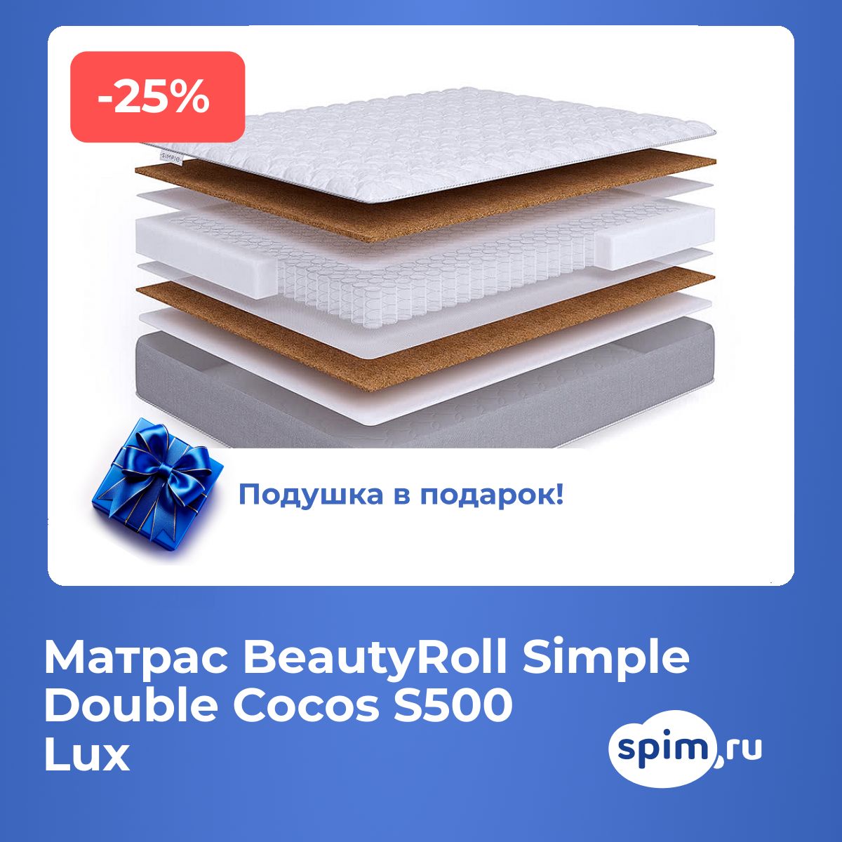 Матрас BeautyRoll Simple Double Cocos S500 Lux 65х200 смАртикул С-129900