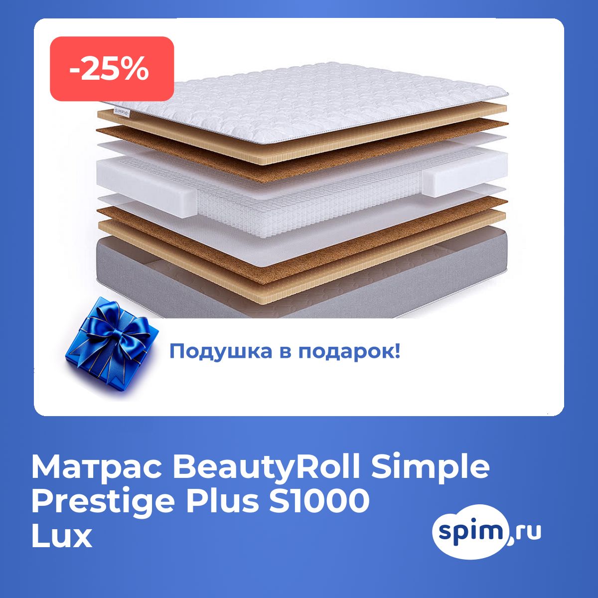 Матрас «BeautyRoll Simple Prestige Plus S1000 Lux» — средней жесткости, которая комфортна большинству людей среднего телосложения. Это — универсальный выбор и детям, и взрослым, и пожилым людям.