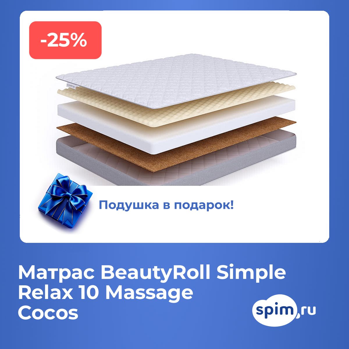 Матрас Simple Relax 10 Massage Cocos относится к тонким матрасам. Перед покупкой убедитесь, что он подойдет к вашей кровати.