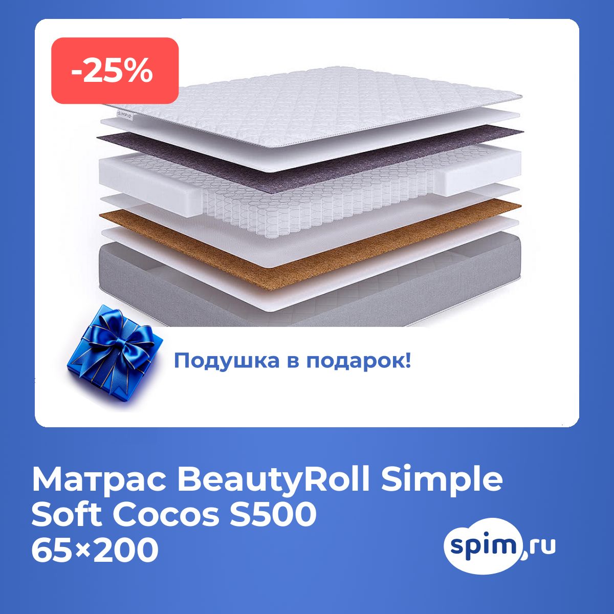 Матрас BeautyRoll Simple Soft Cocos S500 65х200 смАртикул С-129897