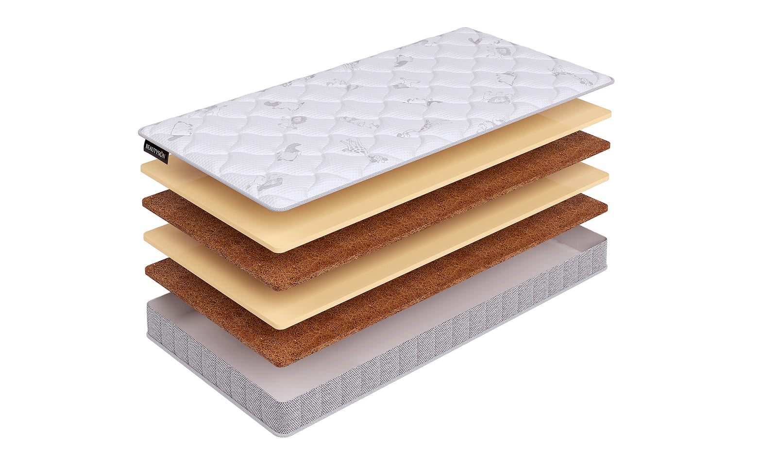 Максимальный вес на спальное место, кг: 50. Высота, см: 8. Наполнение моделиМодель средне–жесткая, то есть имеет универсальную поверхность, на ней ваш малыш будет чувствовать себя комфортно в течение всей ночи. В ее составе натуральная кокосовая койра и искусственный латекс. Это идеальное сочетание, поскольку жесткий кокос обеспечивает надежную ортопедическую поддержку для всего тела, позволяет формировать позвоночник малыша, а мягкий и упругий латекс гарантирует полное расслабление и снимает мышечные нагрузки в результате чрезмерной активности ребенка. Оба материала хорошо пропускают воздух и абсолютно безопасны для здоровья.Преимущество матраса без пружинМодель беспружинная, а поэтому обеспечивает более плотную поддержку для тела, что благоприятно скажется на качестве сна вашего ребенка.Гипоаллергенный чехолЧехол модели выполнен из мягкого и приятного хлопкового трикотажа, простеганного на синтепоне. Чехол имеет красивый детский принт.Защита матрасаДля защиты поверхности от загрязнений, попадания пыли и влаги на матрас рекомендуем купить защитный наматрасник–чехол или водонепроницаемый наматрасник.Другие моделиПосмотрите также другие модели серии Baby: Beautyson Baby Airfoam Fiber, Beautyson Baby Multi.