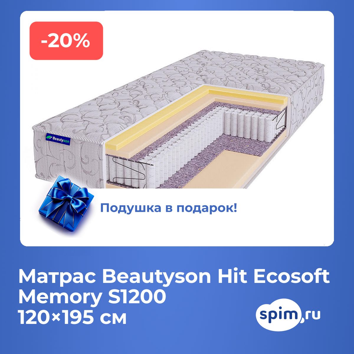 Матрас Beautyson Hit Ecosoft Memory S1200 120х195 смАртикул С-103846