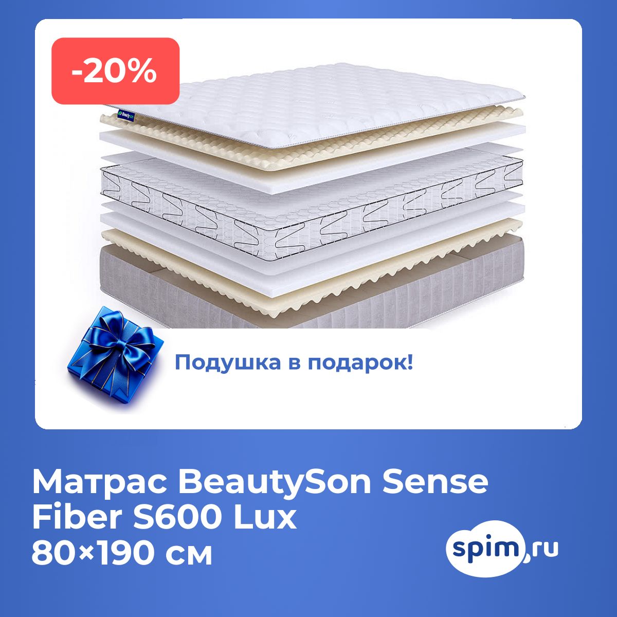 Матрас BeautySon Sense Fiber S600 LuxАртикул С-104064