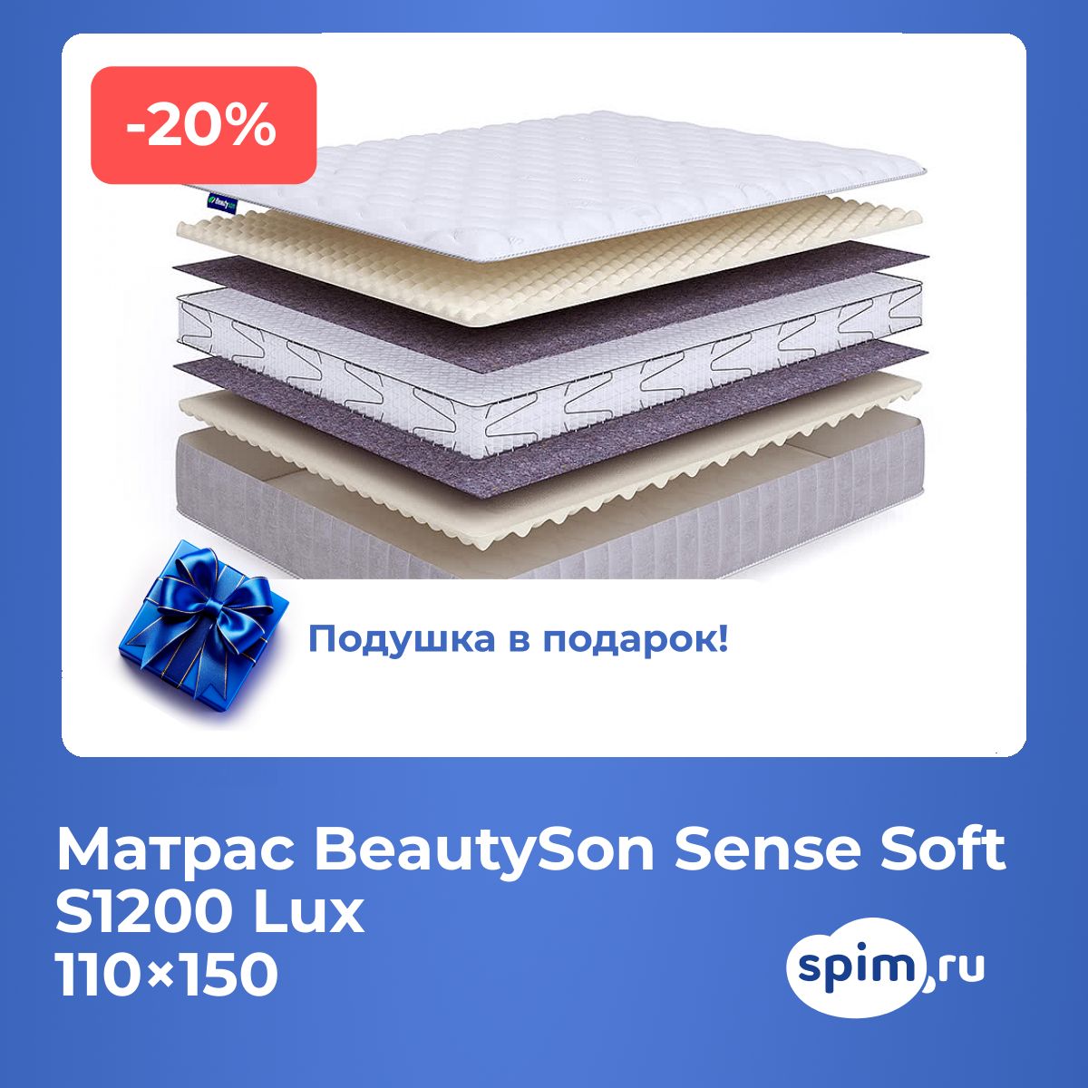 Матрас BeautySon Sense Soft S1200 Lux 110х150 смАртикул С-104052