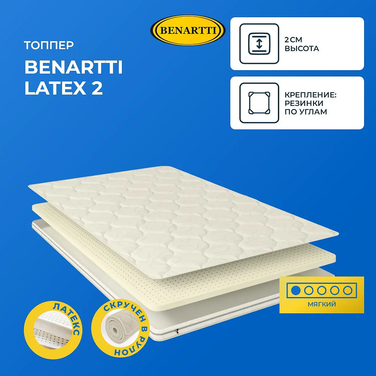 Мягкий матрас «Benartti Latex 2» отлично подойдет человеку с небольшим весом, предпочитающему высокий уровень комфорта.