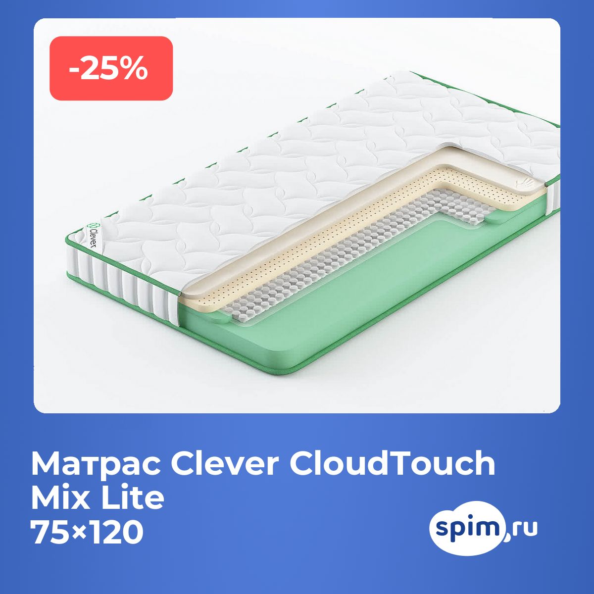 О производителеМатрасы Clever производятся в России и сочетают современные наполнители и прочные ткани. Коллекция Cloud разработана с акцентом на комфорт и выверенный баланс цены и качества.
