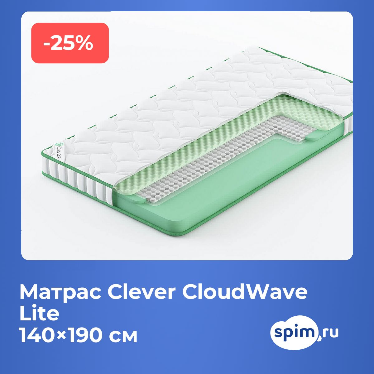 УходДля защиты матраса и сохранения чистоты рекомендуется использовать наматрасник (не входит в комплект). О производителеБренд Clever появился на российском рынке в 2014 году. Производство расположено в Подмосковье, а в коллекции Clever используются только качественные наполнители и современные комбинации слоёв для создания долговечных и удобных матрасов. Clever — это практичный выбор для тех, кто ищет комфортный матрас по разумной цене.