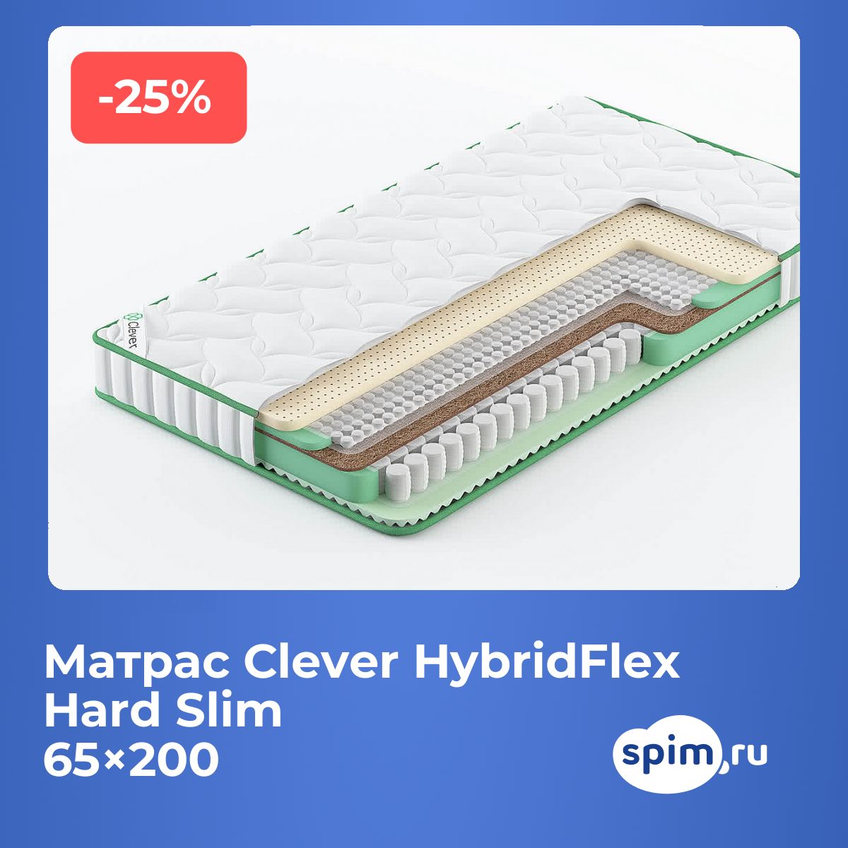 Матрас Clever HybridFlex Hard Slim 65х200 смАртикул С-116601