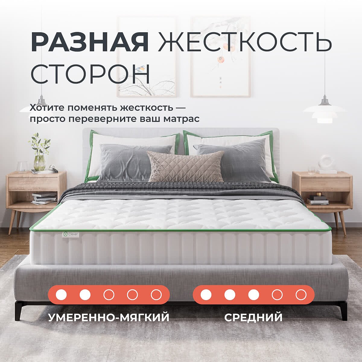 Полутораспальный матрас Clever Select 120х195 подойдет для кроватей с размерами спального места, обозначенными как 120x195 см, 1200х1950 мм, 195х120 см, 1950х1200 мм (ширина 120 см, длина 195 см).
