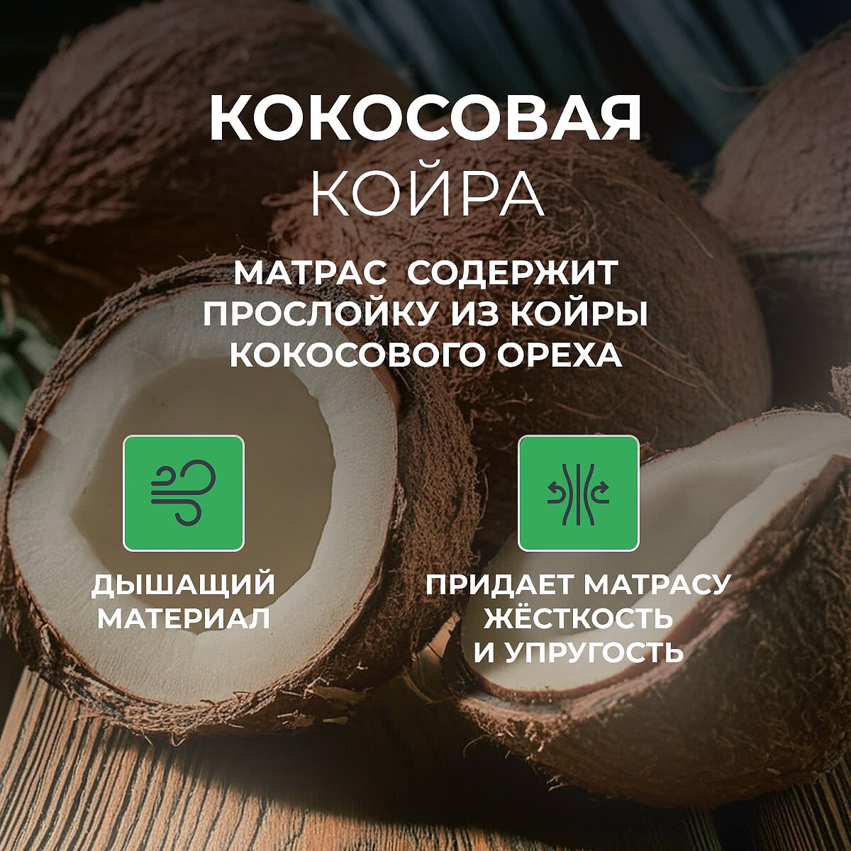 Кокос — натуральный материал, койра отлично дышит, придает матрасу «Select» жесткость и упругость.