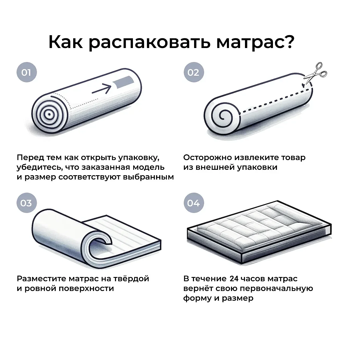Матрас «Select» свернут на фабрике в компактный рулон. Скрученный вакуумный матрас удобно перевезти на дачу или просто забрать из магазина. Свернуть его повторно дома так же компактно невозможно.
