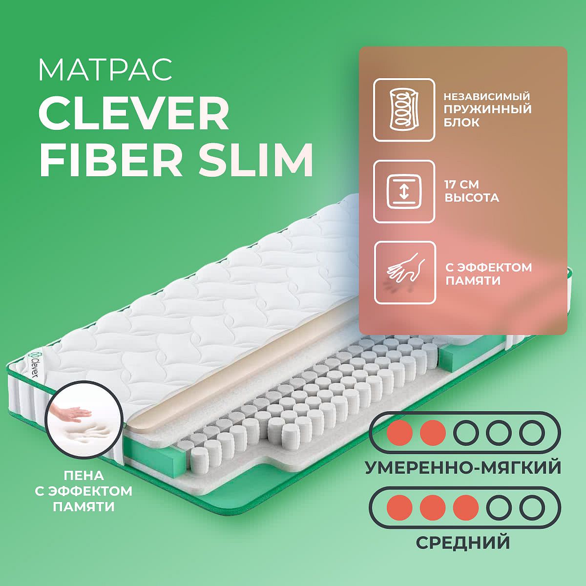 Преимущество матраса Fiber Slim — он имеет 2 различные по жесткости стороны: средне-мягкую и средне-жесткую.