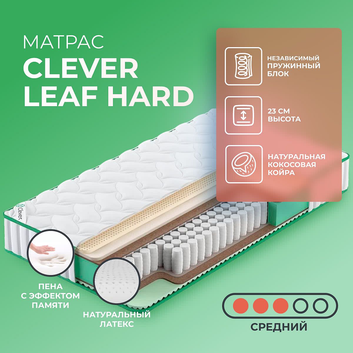 Матрас «Clever Leaf Hard» — средней жесткости, которая подходит большинству людей среднего телосложения. Это — оптимальный вариант и детям, и взрослым, и пожилым людям.