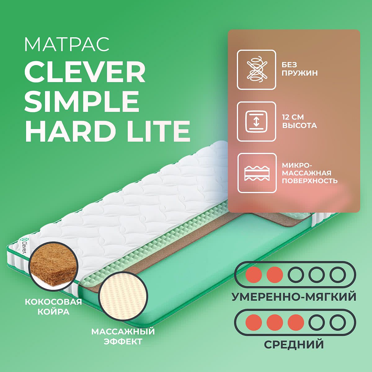 Матрас Clever Simple Hard Lite 65х200 смАртикул С-103747