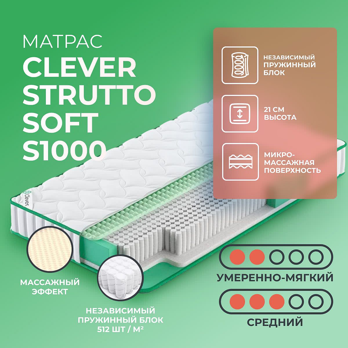 Матрас Clever Strutto Soft S1000 60х60 смАртикул С-84229