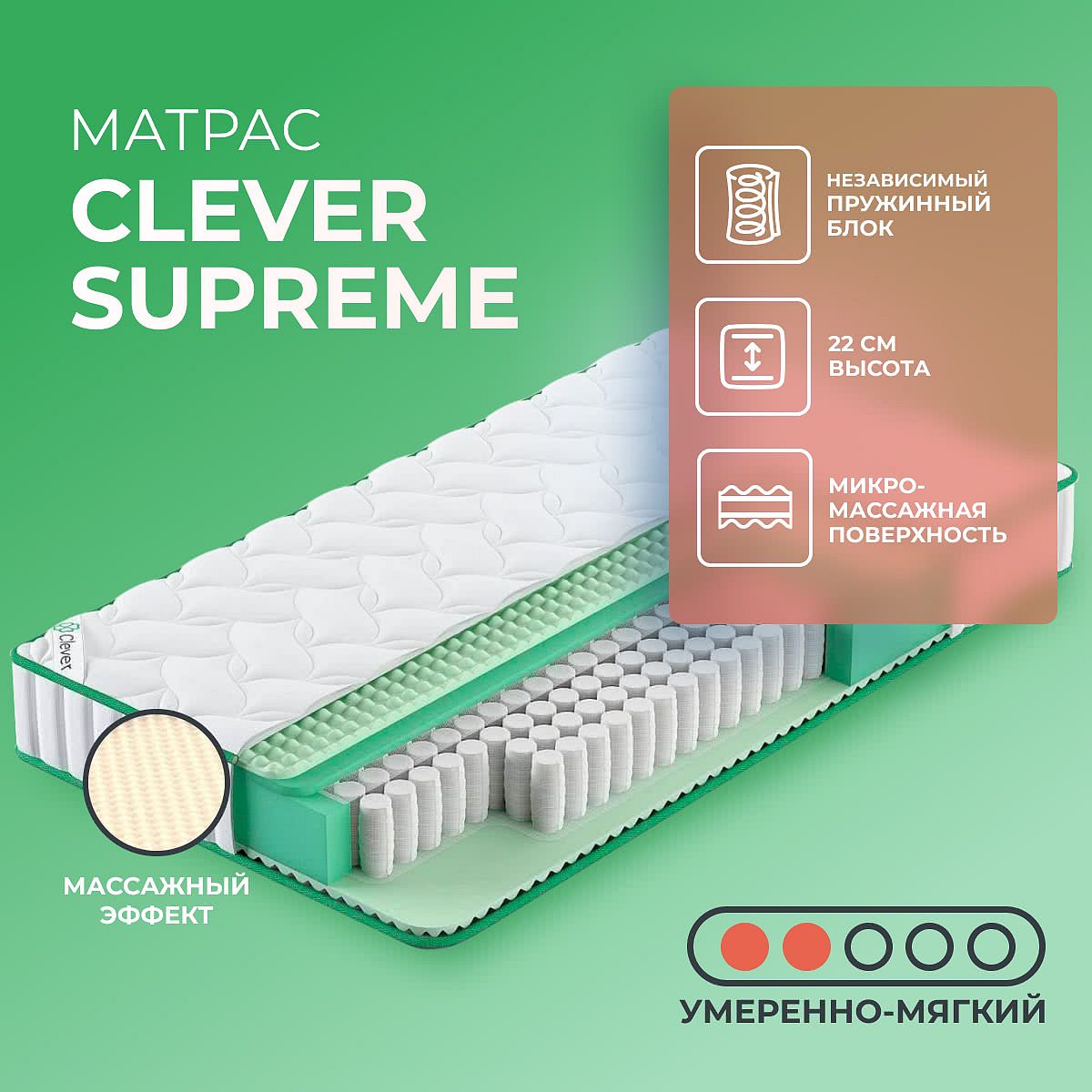 Средне-мягкий матрас «Clever Supreme» просто создан для истинного ценителя комфорта. Такая модель отлично подходит людям с небольшим весом.