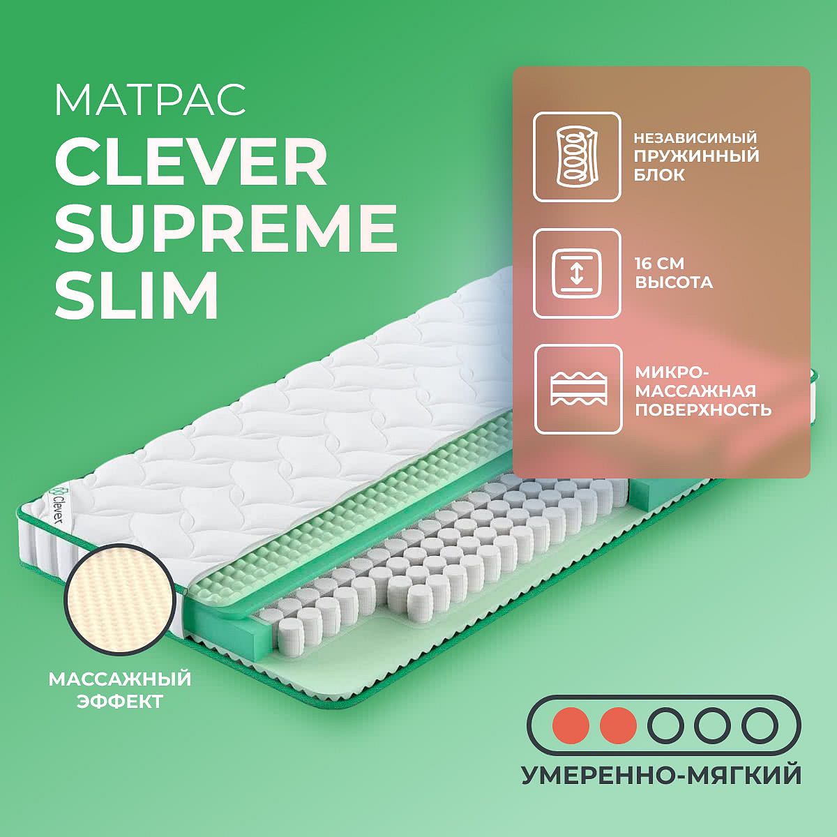 Средне-мягкий матрас «Clever Supreme Slim» просто создан для настоящего ценителя комфорта. Такая модель хорошо подходит людям с небольшим весом.