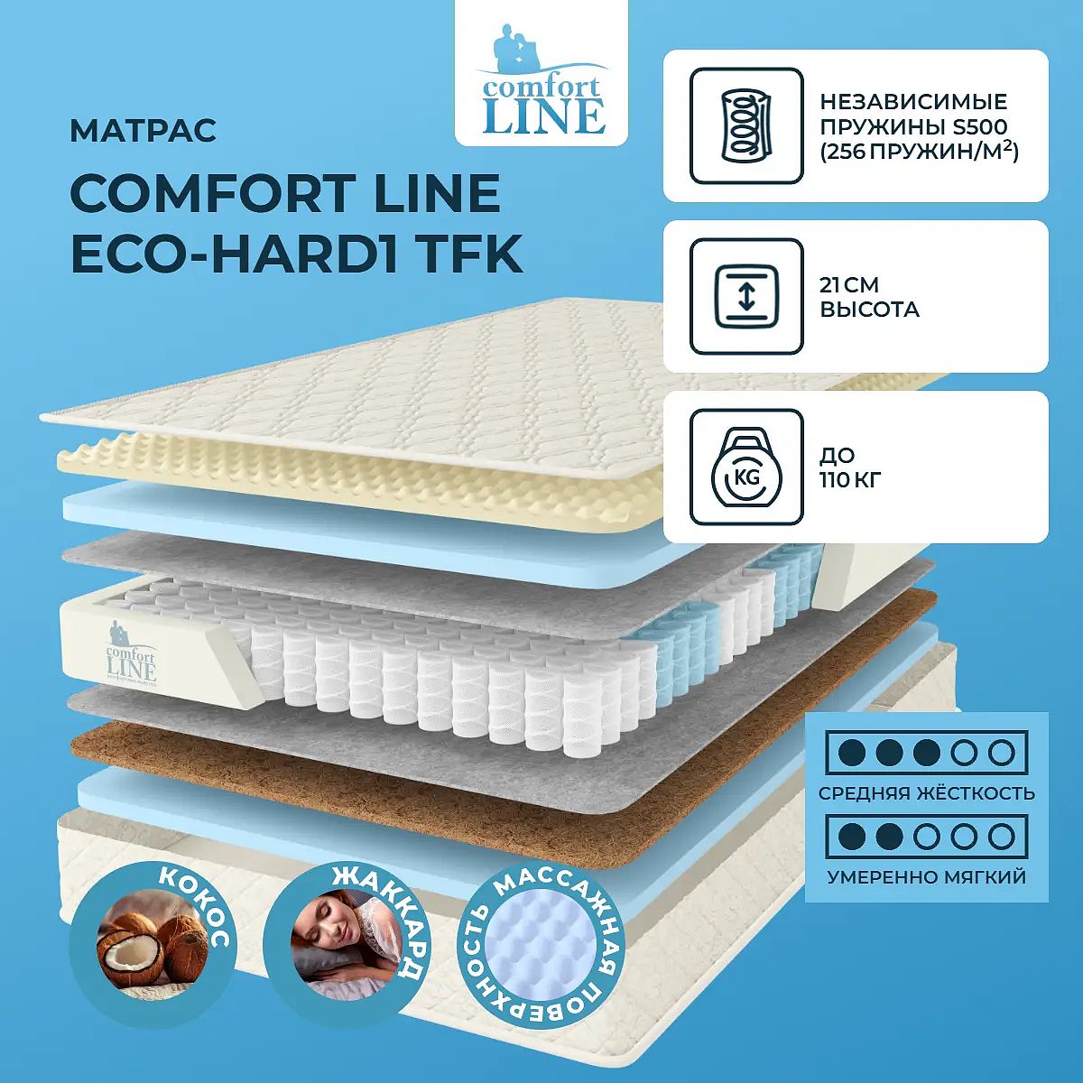 Преимущество матраса Eco-Hard1 TFK — он имеет 2 различные по жесткости стороны: средне-жесткую и средне-мягкую.