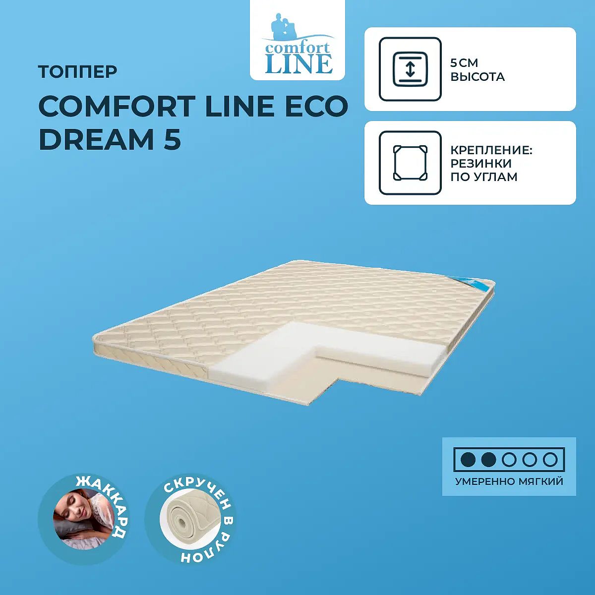 Средне-мягкий матрас «Comfort Line Eco Dream 5» просто создан для истинного ценителя комфорта. Такой вариант отлично подойдет людям с небольшим весом.