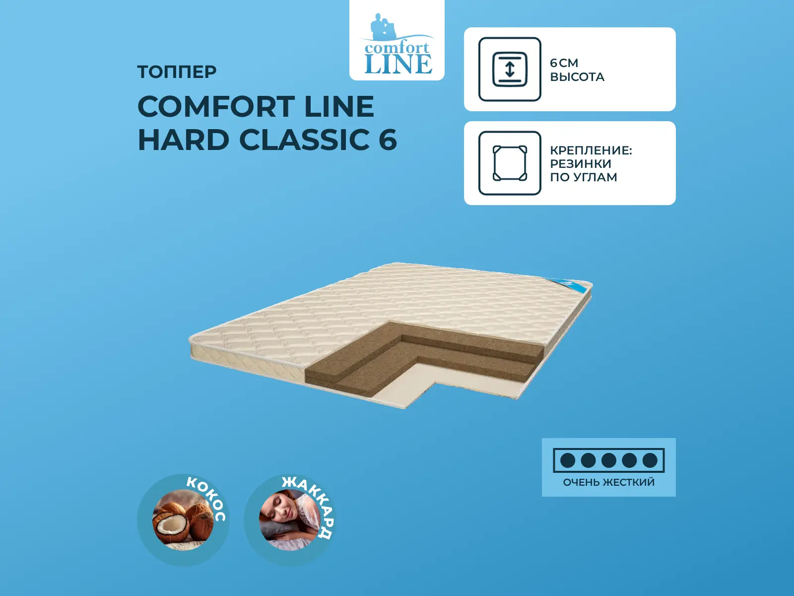 Кокос — натуральный материал, койра отлично дышит, придает матрасу «Hard Classic 6» жесткость и упругость.