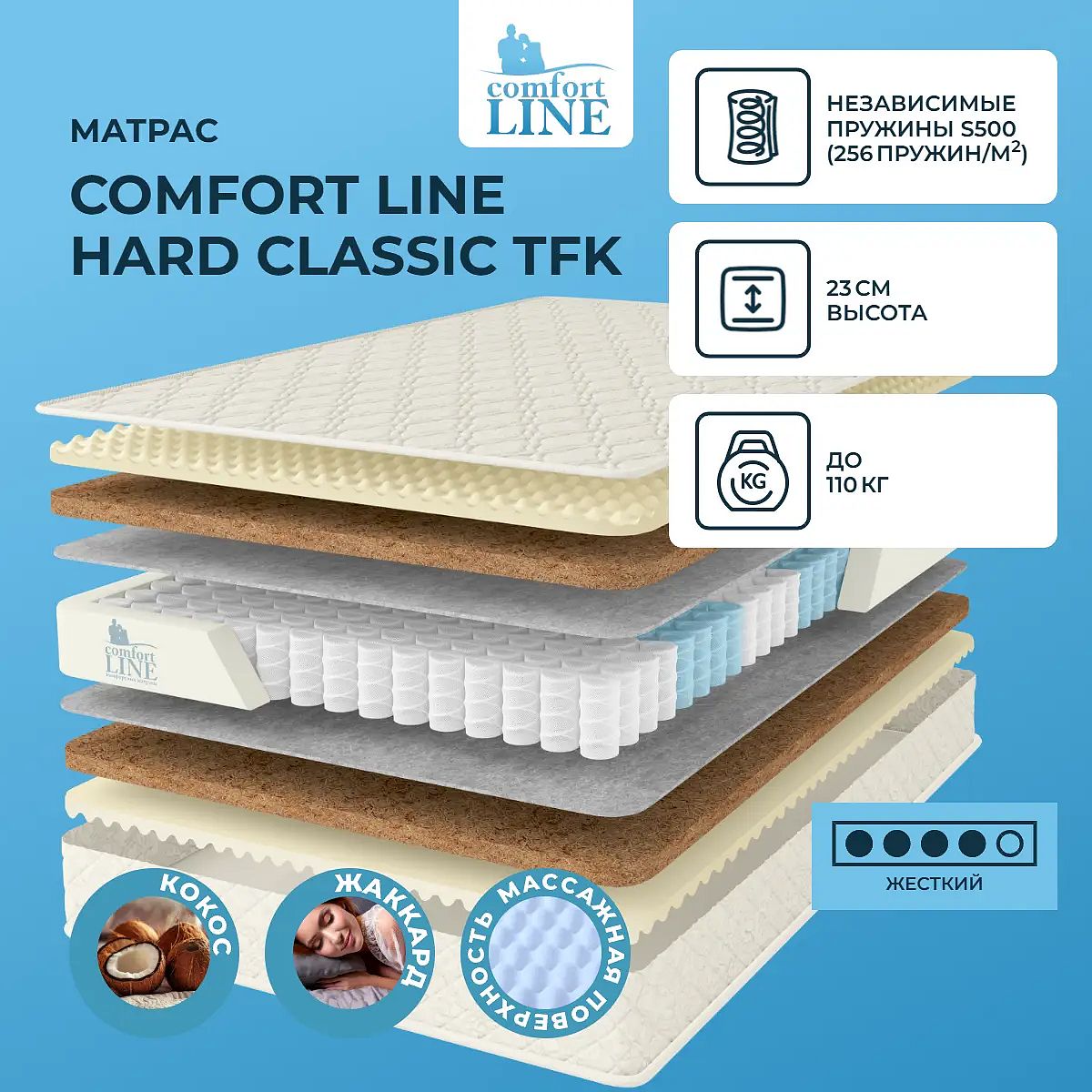 Матрас высокой жесткости «Comfort Line Hard Classic TFK» — оптимальный выбор для уверенной поддержки позвоночника. Именно такие модели обычно рекомендуют подросткам, спортсменам или людям с проблемами позвоночника.
