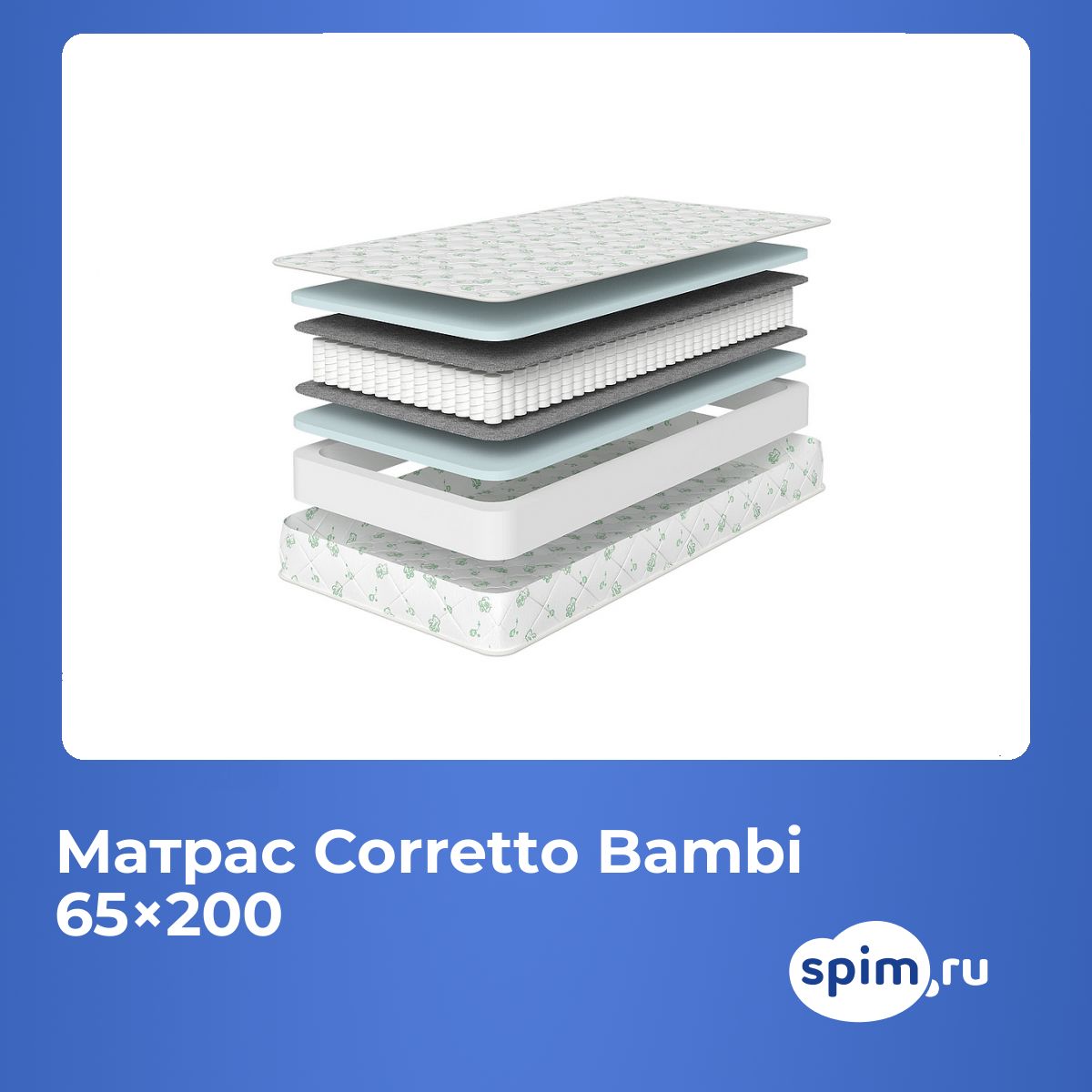 Максимальная нагрузка, кг: 70. Высота, см: 10. По Вашему желанию матрас может быть доставлен в скрученном виде. Наполнение моделиПоверхность модели мягкая и комфортная благодаря наличию внутри слоев пенополиуретана. Это прочный и эластичный наполнитель, который может подстраиваться под контуры тела ребенка и расслаблять его. ППУ характеризуется плотной структурой и пористым составом. Через эти поры воздух свободно проходит и циркулирует в матрасе. Таким образом, ваш малыш не будет перегреваться в течение всей ночи.Особенности работы пружинВ центре модели проложен независимый пружинный блок на 256 элементов на 1 кв. метр. Каждая пружина помещена в отдельный чехол и действует самостоятельно, точечно воздействует на тело спящего. На таком блоке тело ребенка будет расслаблено, позвоночник разгружен от лишней нагрузки. По обеим сторонам от блока проложен термовойлок, который защищает слои от выпирания пружин.Чехол из трикотажаЧехол модели выполнен из трикотажа и имеет красочный детский принт.Защита матрасаДля защиты поверхности от загрязнений, попадания пыли и влаги на матрас рекомендуем купить защитный наматрасник или водонепроницаемый наматрасник-чехол.Другие моделиПосмотрите также другие детские модели: Corretto Baby Orto, Corretto Maugli.