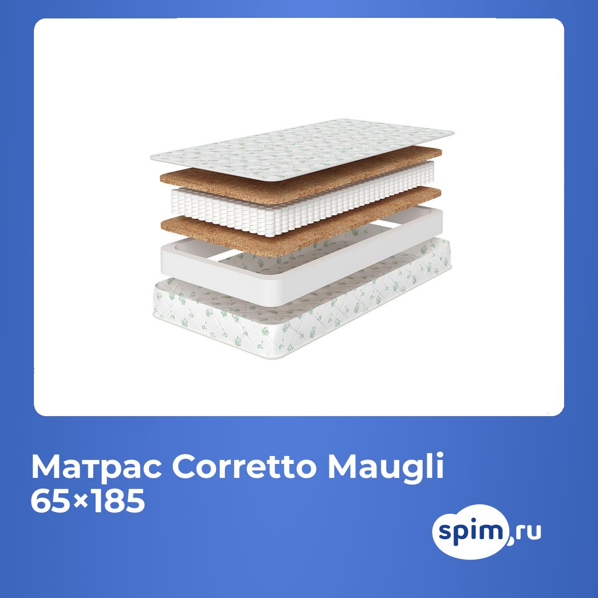 Максимальная нагрузка, кг: 70. Высота, см: 10. По Вашему желанию матрас может быть доставлен в скрученном виде. Наполнение моделиПоверхность детской модели Corretto Maugli имеет повышенную жесткость – так она идеально подойдет для формирования еще неокрепшей осанки малыша. Ведь материал, входящий в состав модели, жесткий и ортопедичный. Это натуральная кокосовая койра. Она создает надежную анатомическую поддержку для всего тела, способствует правильному положению тела на поверхности. Кроме того, отлично вентилируется и не накапливает пыль и бактерии.Особенности работы пружинВ центре модели проложен пружинный блок независимого типа, в котором на 1 кв. метр приходится по 256 микропружин. Пружинки маленькие и очень прочные, они точечно воздействуют на тело ребенка, так как помещены в индивидуальные чехлы из прочного материала. Он препятствует их выпиранию и общей деформации блока.Чехол из трикотажаЧехол модели выполнен из трикотажа и имеет красочный детский принт.Защита матрасаДля защиты поверхности от загрязнений, попадания пыли и влаги на матрас рекомендуем купить защитный наматрасник или водонепроницаемый наматрасник-чехол.Другие моделиПосмотрите также другие детские модели: Corretto Baby Orto, Corretto Bambi.