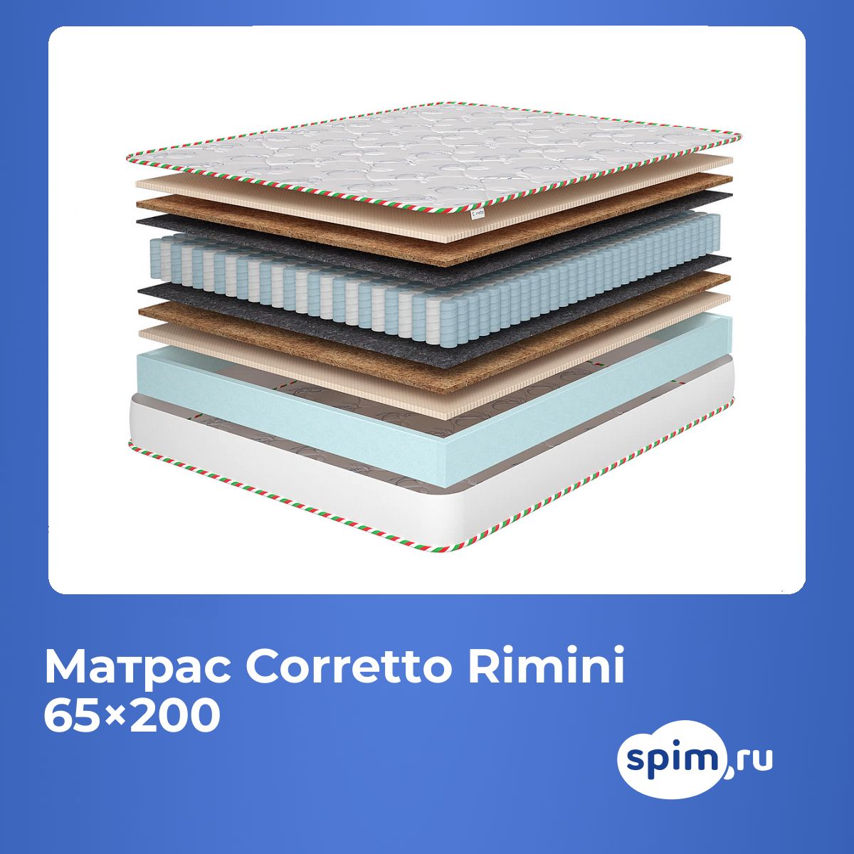Кокос — натуральный материал, койра отлично дышит, придает матрасу «Rimini» жесткость и упругость.