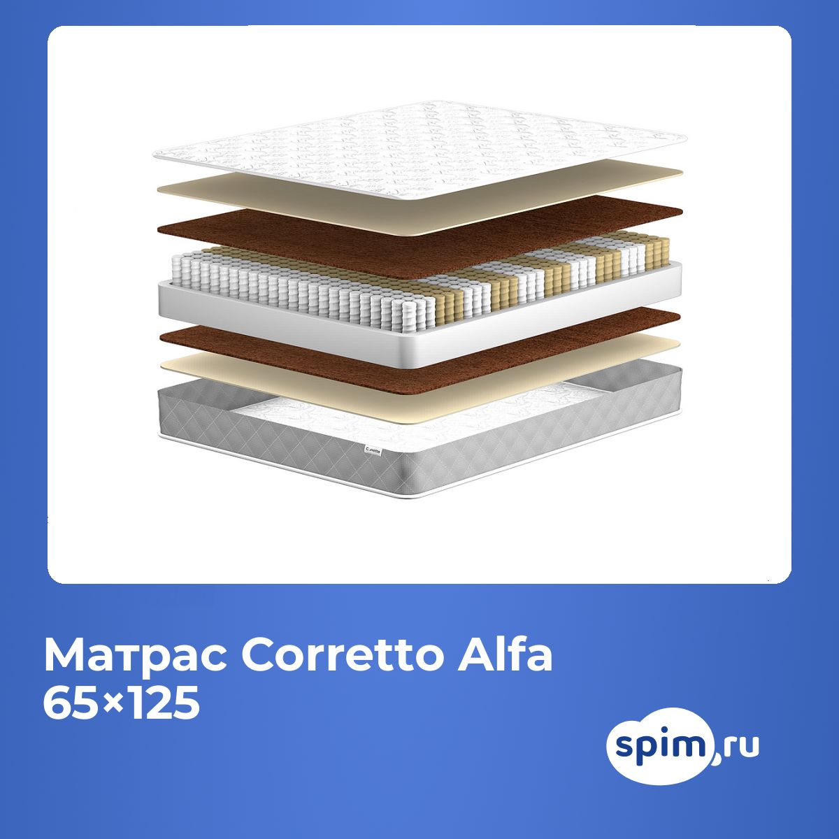 Максимальная нагрузка, кг: 120. Высота, см: 15. По Вашему желанию матрас может быть доставлен в скрученном виде. Особенности работы пружинМодель Corretto Alfa построена на основе независимого пружинного блока. Такой блок имеет по 256 микропружин на 1 кв. метр, где каждая пружина помещена в отдельный чехол. Это позволяет пружинам точечно воздействовать на тело спящего и распределять нагрузку равномерно.Наполнение моделиВ качестве наполнителя используется натуральное кокосовое волокно. Кокос жесткий и очень прочный, способен выдерживать различные деформации и надолго сохраняет свою форму. Входящие в состав кокоса волокна хорошо проводят воздух и обеспечивают постоянный его приток на спальную поверхность. Для придания волокнам упругости их пропитывают соком натурального латекса. Это делает кокос более износостойким. К тому же он служит хорошей ортопедической поддержкой для всего тела.Чехол из трикотажаЧехол модели выполнен из трикотажа.Защита матрасаДля защиты поверхности от загрязнений, попадания пыли и влаги на матрас рекомендуем купить защитный или водонепроницаемый наматрасник.Другие моделиПосмотрите также другие пружинные модели: Corretto De Luxe Roll, Corretto Lira.