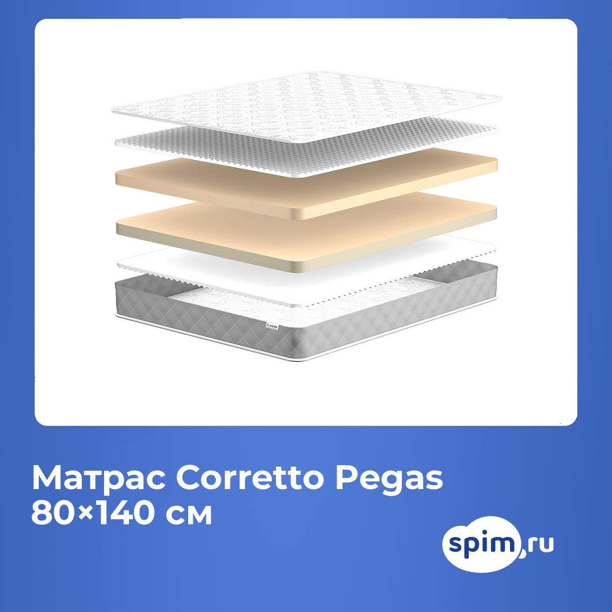Односпальный матрас Corretto Pegas 80х140 подойдет для кроватей с размерами спального места, обозначенными как 80x140 см, 800х1400 мм, 140х80 см, 1400х800 мм (ширина 80 см, длина 140 см).