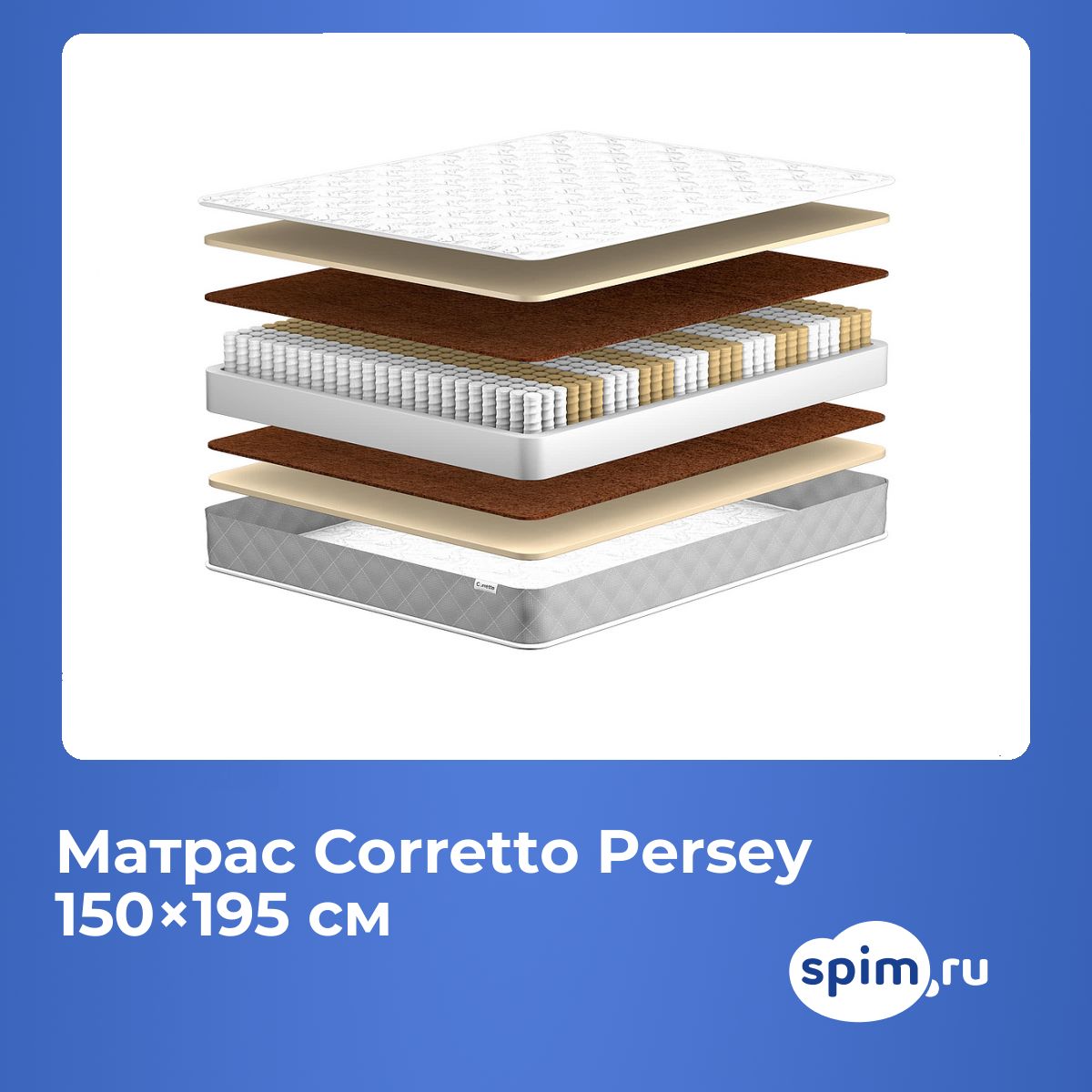 Двуспальный матрас Corretto Persey 150х195 подойдет для кроватей с размерами спального места, обозначенными как 150x195 см, 1500х1950 мм, 195х150 см, 1950х1500 мм (ширина 150 см, длина 195 см).