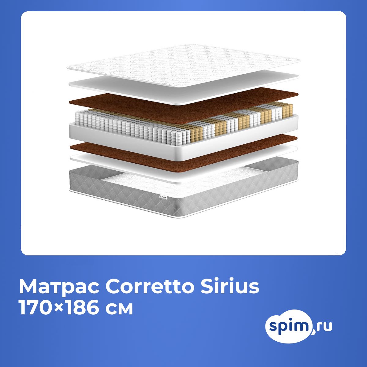 Максимальная нагрузка, кг: 160. Высота, см: 26. По Вашему желанию матрас может быть доставлен в скрученном виде. Наполнение моделиПоверхность модели Corretto Sirius нежесткая и немягкая, а средняя, поэтому будет удобна большинству людей, в частности для тех, кто выбирает между жестким и мягким матрасом. В его основе проложены слои кокосовой койры и мемориформ. Кокос жесткий и износостойкий, он гарантирует высокий ортопедический эффект, способствует правильному положению тела на поверхности, а также поддерживает благоприятный микроклимат. Мемориформ как материал упругий и очень эластичный имеет способность подстраиваться под все контуры тела и под действием температуры повторять их. Поэтому он имеет эффект памяти формы. Ваше тело расслаблено и получает максимальное расслабление во время сна.Особенности работы пружинВ центре расположены независимые пружины. Это блок, в котором по 256 элементов на 1 кв. метр помещены в отдельные чехлы из прочной ткани. В результате пружины никак не соприкасаются друг с другом, действуют точечно и способствуют равномерному распределению нагрузки по поверхности.Чехол из трикотажаЧехол модели выполнен из трикотажной ткани.Защита матрасаДля защиты поверхности от загрязнений, попадания пыли и влаги на матрас рекомендуем купить защитный наматрасник или водонепроницаемый наматрасник-чехол.Другие моделиПосмотрите также другие пружинные модели: Corretto Orion, Corretto Persey.