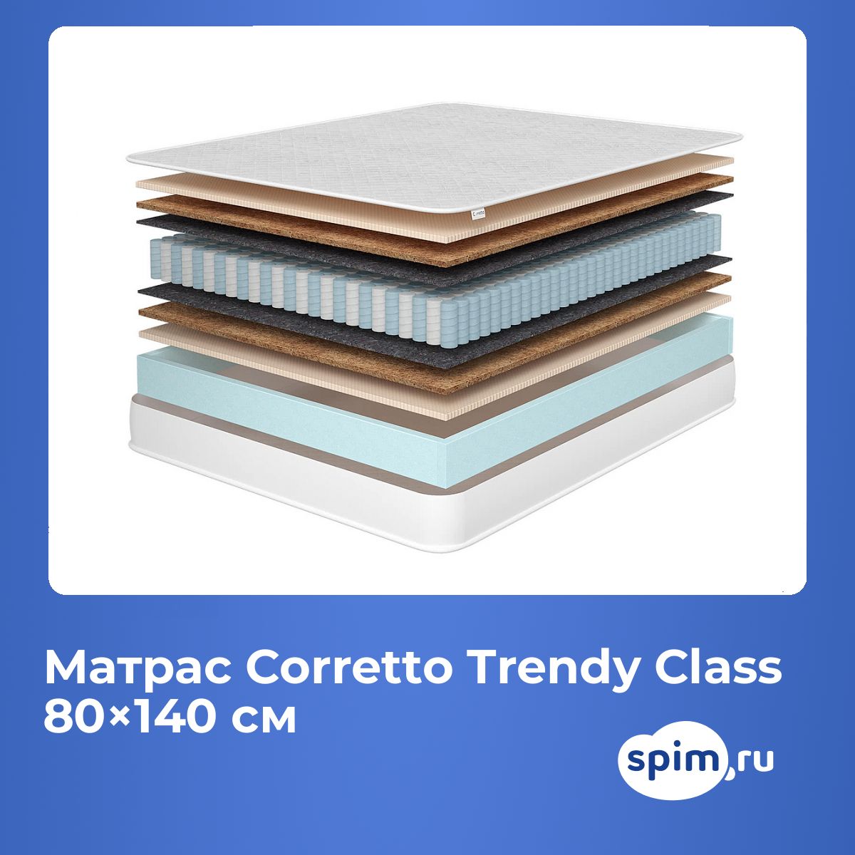 Односпальный матрас Corretto Trendy Class 80х140 подойдет для кроватей с размерами спального места, обозначенными как 80x140 см, 800х1400 мм, 140х80 см, 1400х800 мм (ширина 80 см, длина 140 см).