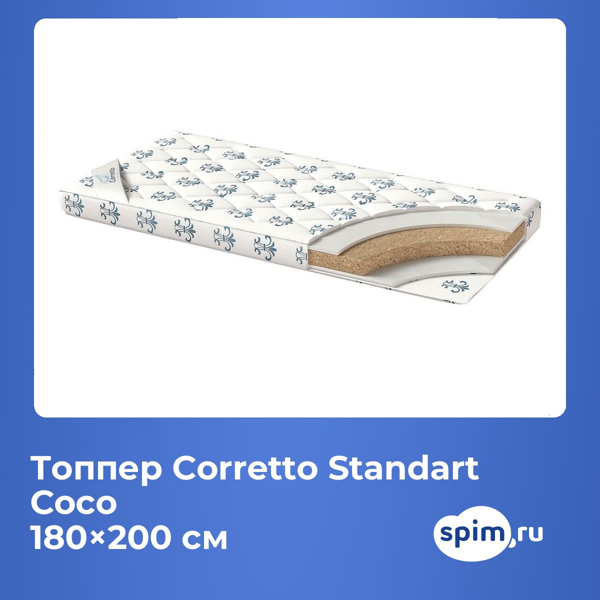 Двуспальный топпер Corretto Standart Coco 180х200 подойдет для кроватей с размерами спального места, обозначенными как 180x200 см, 1800х2000 мм, 200х180 см, 2000х1800 мм (ширина 180 см, длина 200 см).