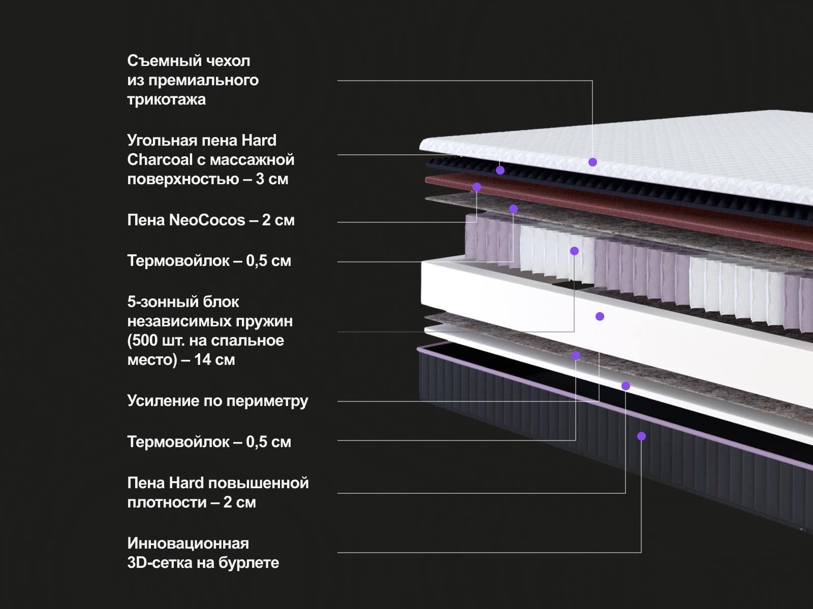 В составе матраса – материал с конволюторной резкой "волна", создающий эффект микромассажа.