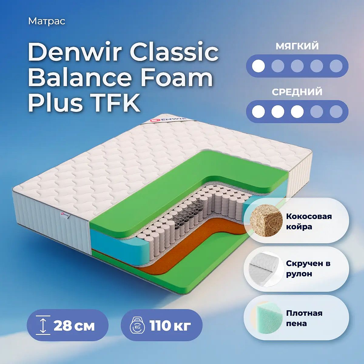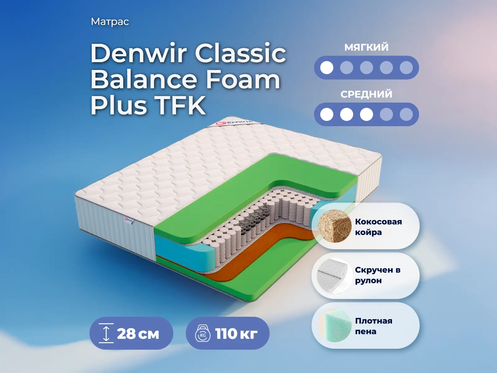 Матрас Denwir Classic Balance Foam Plus TFK 65х205 смАртикул С-114316