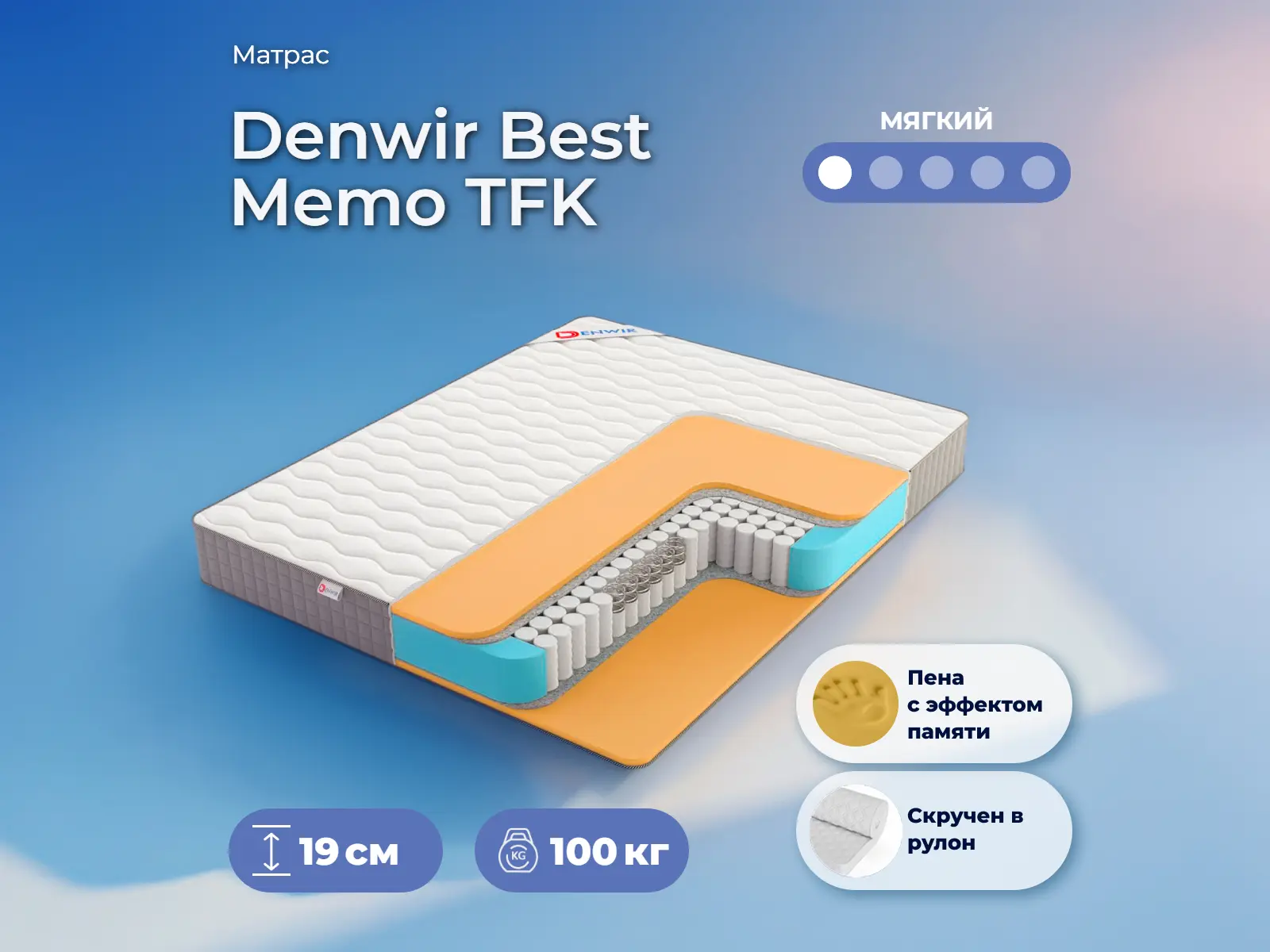 Мягкий матрас «Denwir Best Memo TFK» отлично подойдет человеку с небольшим весом, ценителю комфорта.
