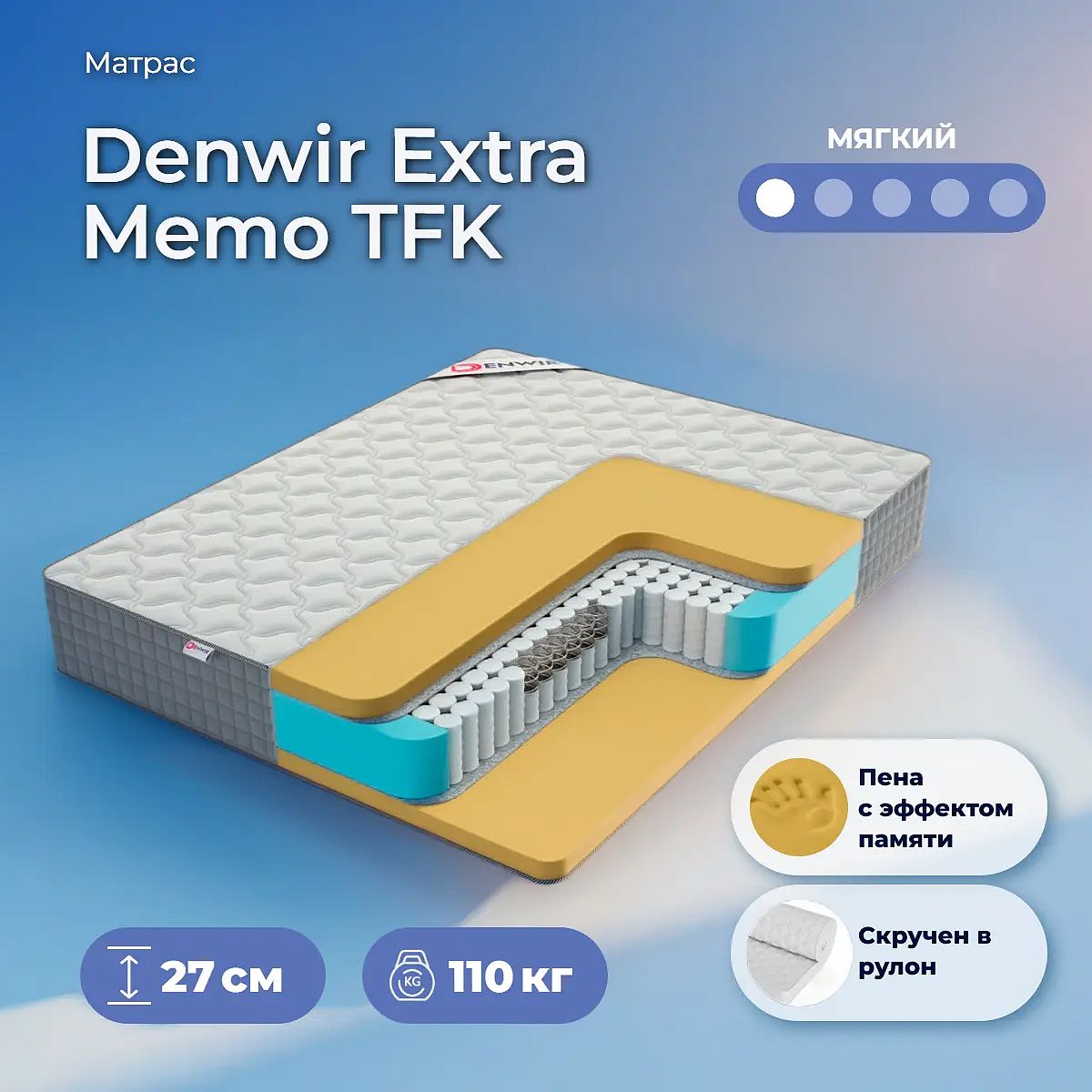 Мягкий матрас «Denwir Extra Memo TFK» отлично подойдет человеку с небольшим весом, предпочитающему высокий уровень комфорта.